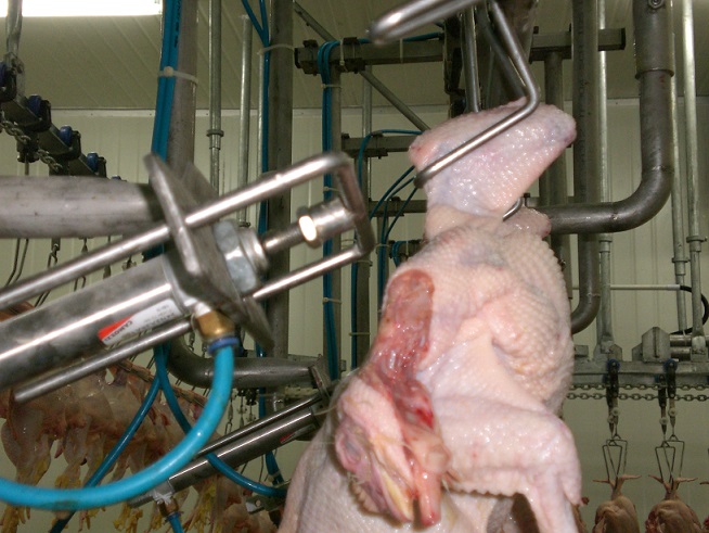 This machine sucks the lungs of the birds using vacuum system and suction pistols. More pistols can be installed for higher processing capacity. Using pistol can prevent damage to the flesh from traditional methods of using hands to manually remove the lungs. Lungs removed from birds are directly transferred to the waste treatment area. This machine is efficient, saves time and maintains hygiene of the processing plant.